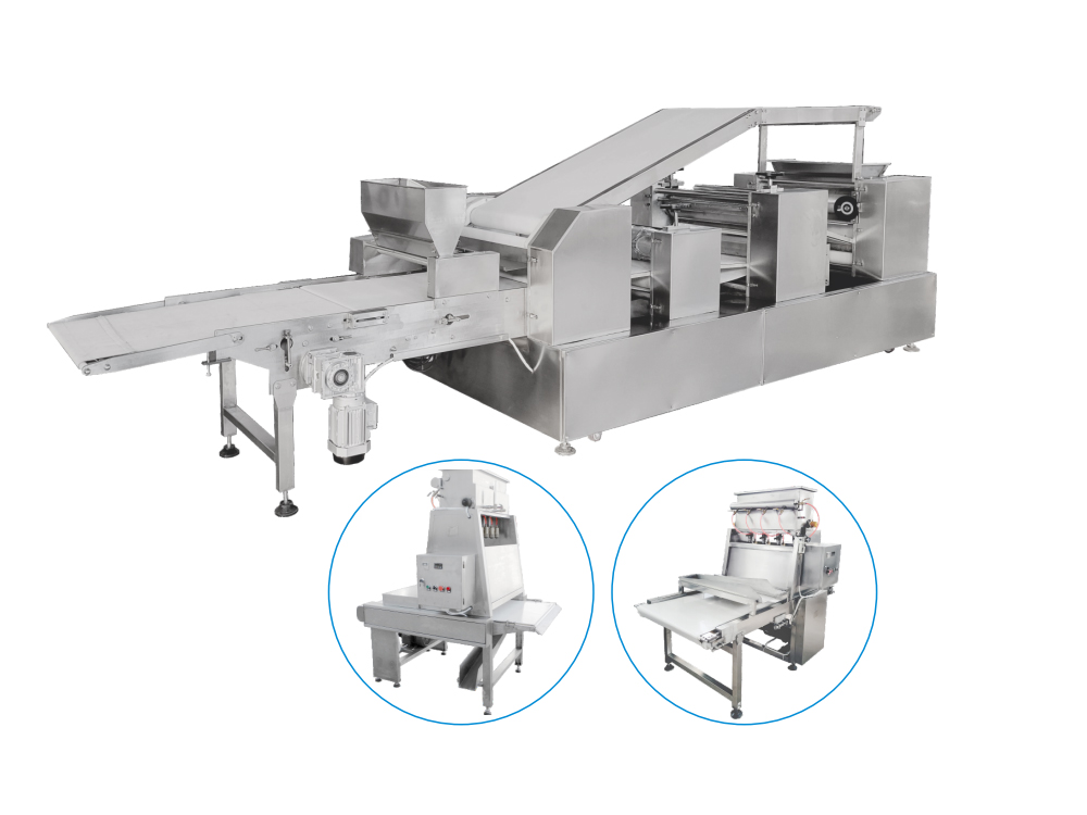 型號  型號500/600/700型  生產(chǎn)流程  拌漿機(jī)將糖漿加熱攪拌均勻→和面→面團(tuán)擠出輸送→面餅成型→一次烘烤→噴糖→二次烘烤→冷卻  特色  1、成型機(jī)為變頻調(diào)速,自動化程度高,更換模具可生產(chǎn)多規(guī)格產(chǎn)品。  2、電烤爐通過加熱管加熱,并進(jìn)行了合理的爐溫分區(qū),節(jié)能環(huán)保的同時還具有升溫快,降溫少,補(bǔ)溫快等特點?! ?、整套設(shè)備自動化程度高、操作簡單方便,可生產(chǎn)出多品種、多規(guī)格的產(chǎn)品。減輕勞動力,節(jié)省人工成本出品穩(wěn)定,輕松實現(xiàn)量產(chǎn)化?! ?、機(jī)器安全、防護(hù)、可靠、穩(wěn)定性高。電氣安全符合國家標(biāo)準(zhǔn)?! ?、可以根據(jù)客戶場地及工藝要求進(jìn)行定制?! ‰娍緺t技術(shù)參數(shù)